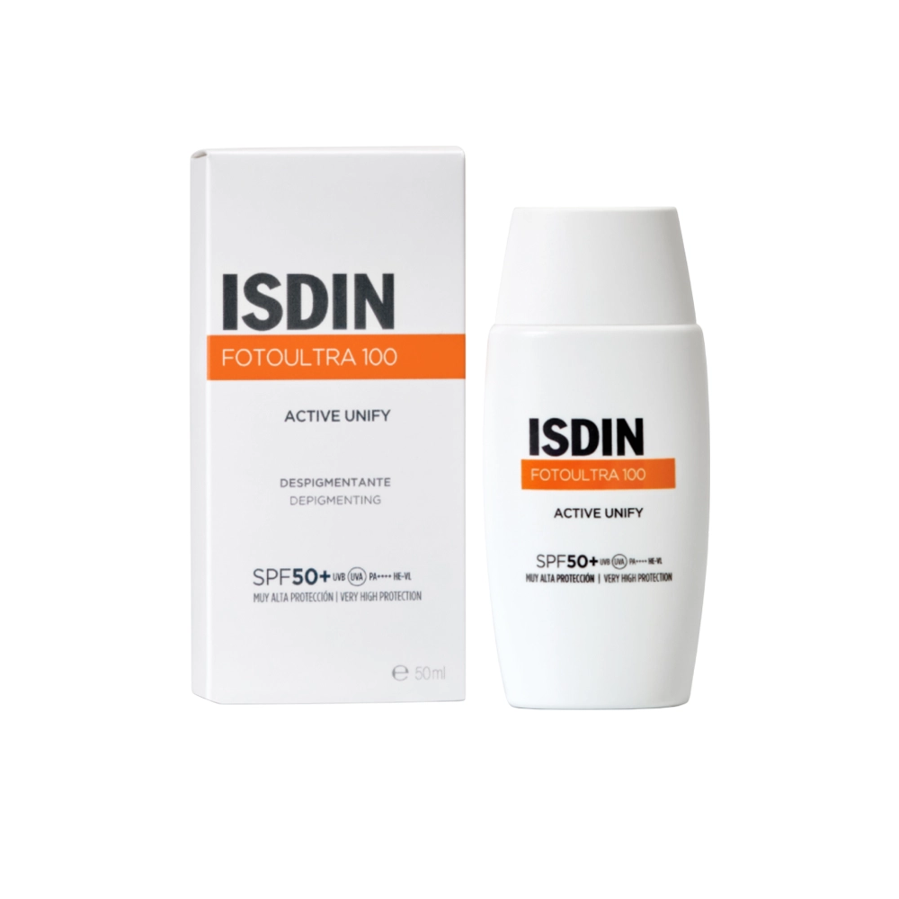 کرم ضد آفتاب بی رنگ اکتیو یونیفای 100 فوتو اولترا ایزدین مدل +ISDIN FotoUltra 100 Active Unify Fusion Fluid SPF 100